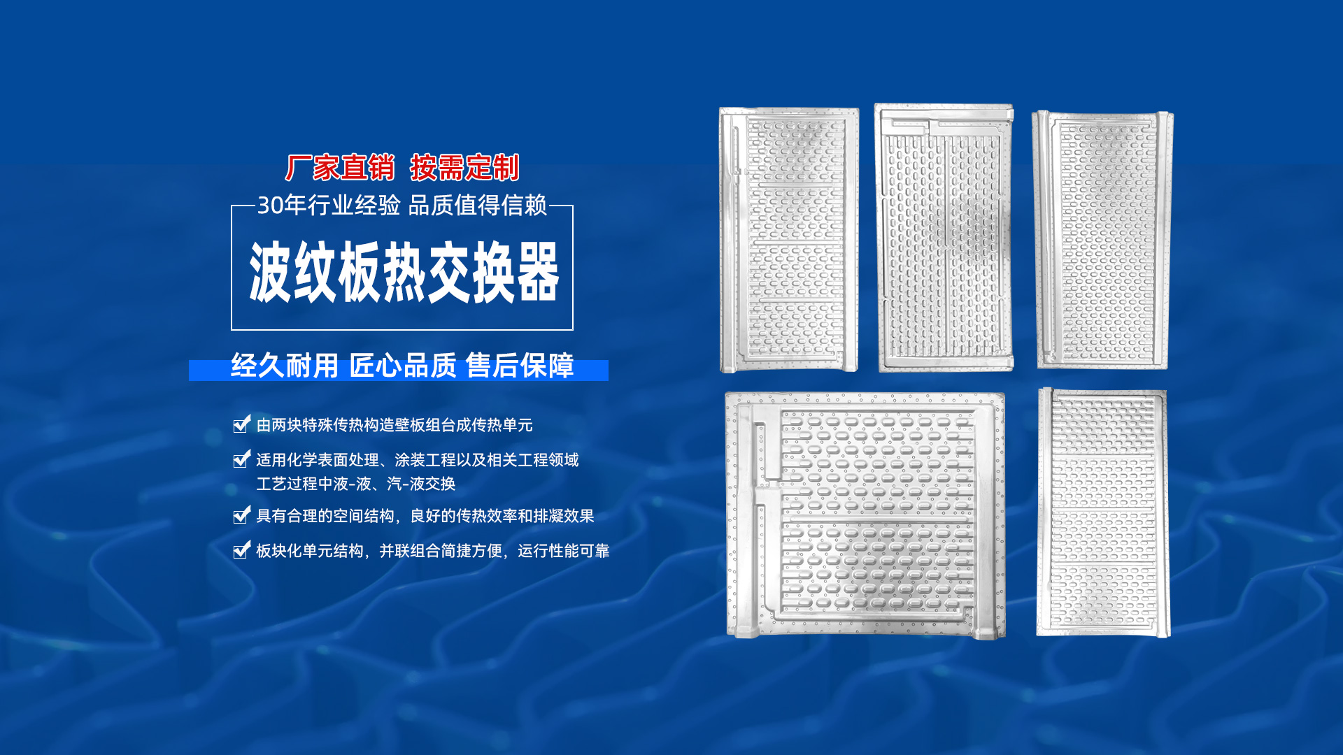 波紋板熱交換器具有合理的空間結(jié)構(gòu),良好的傳熱效率和排凝效果,板塊化單元結(jié)構(gòu),串并聯(lián)組合簡(jiǎn)捷方便,運(yùn)行性能可靠,是當(dāng)今熱傳遞領(lǐng)域中一種新穎傳熱單元。